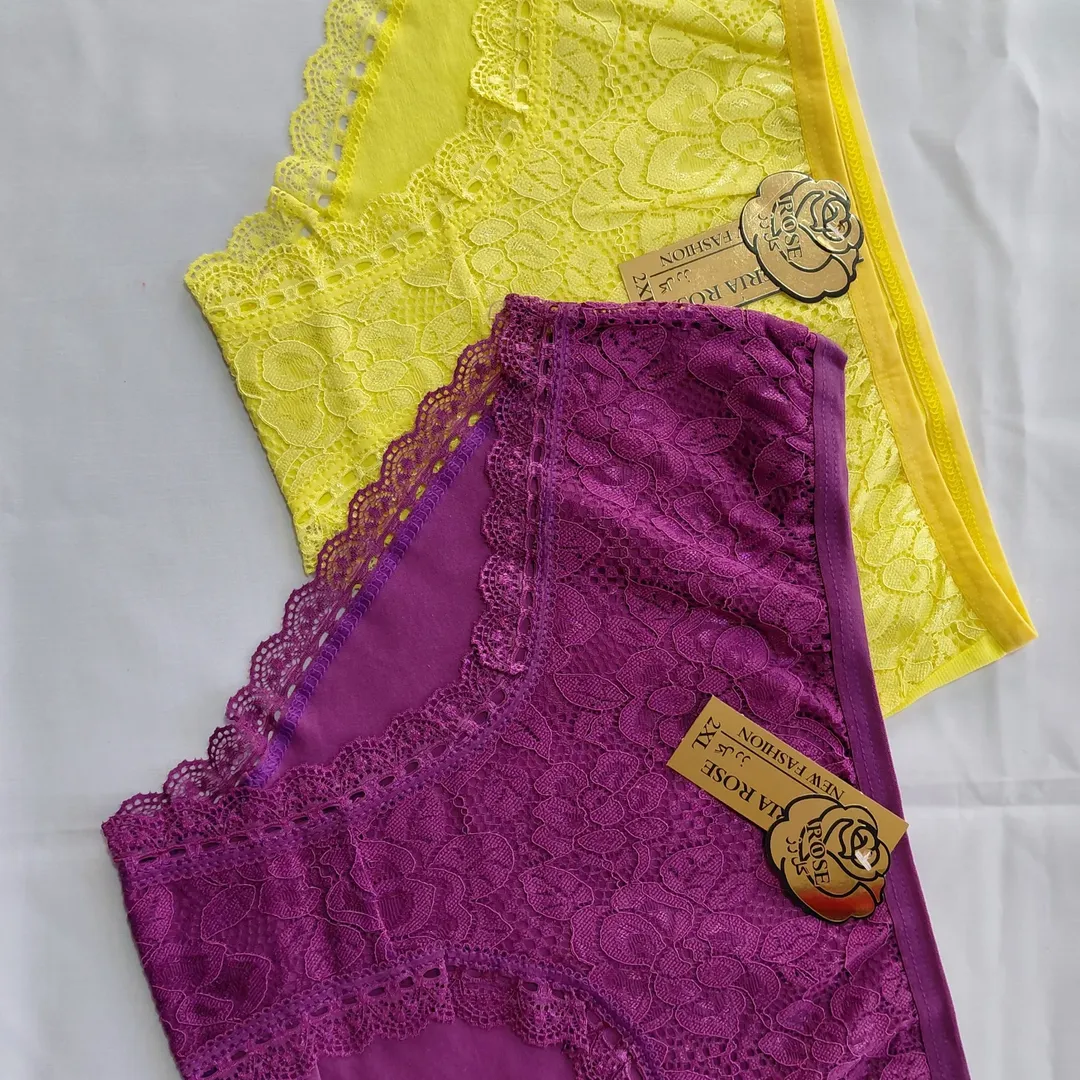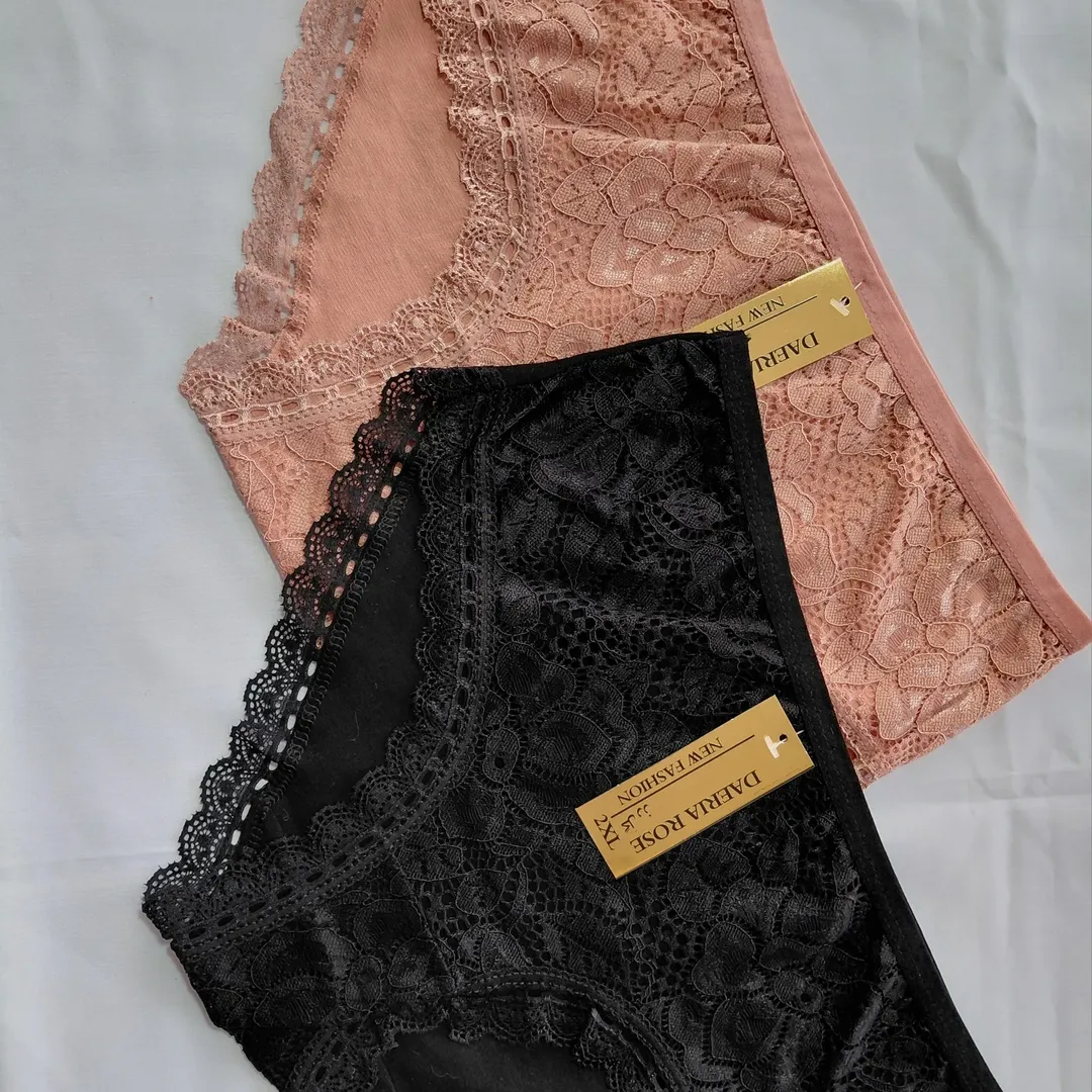 شورت نخی جلو دانتل برند گل رز پشت و فاق نخی جلو دانتل