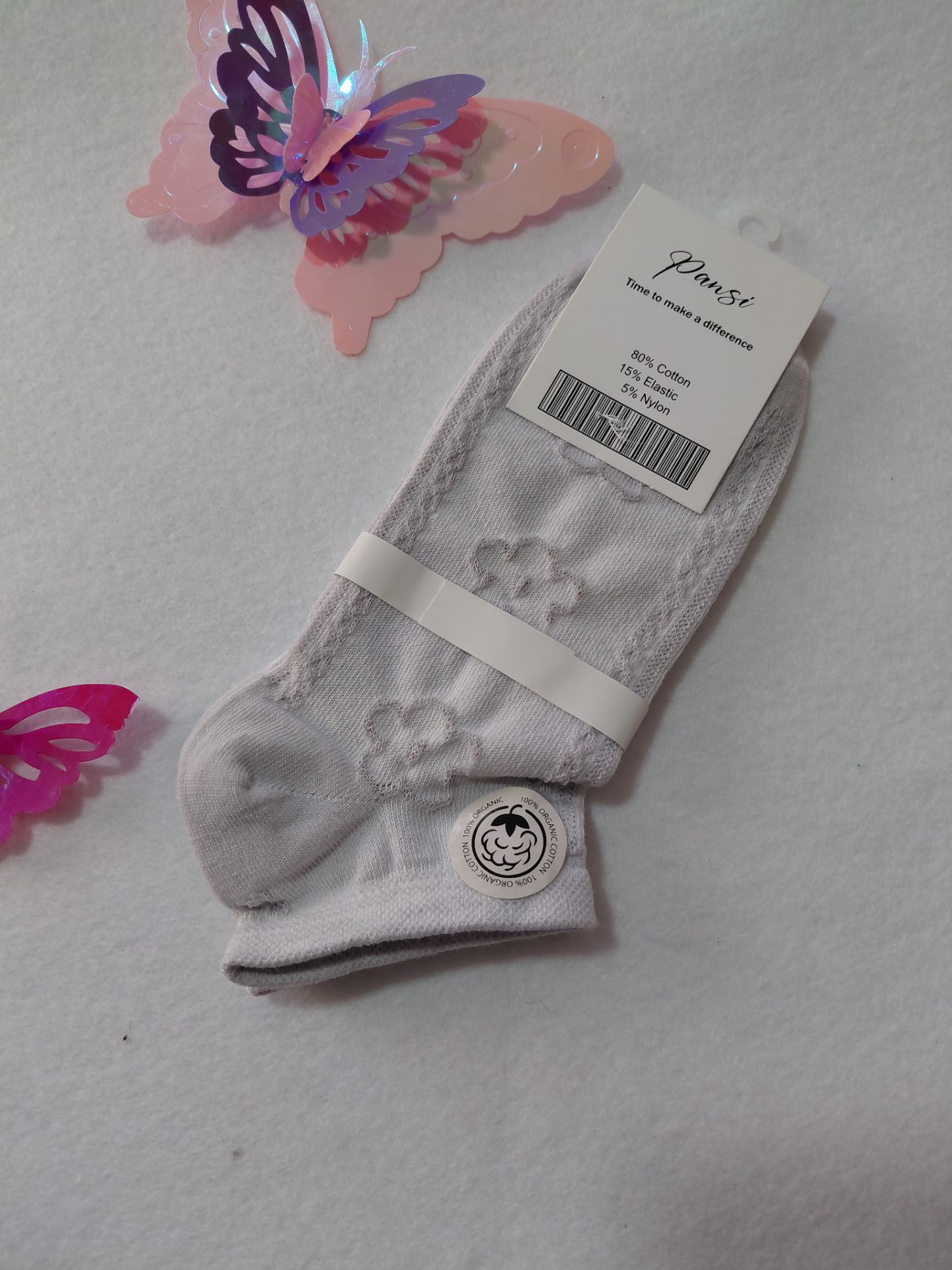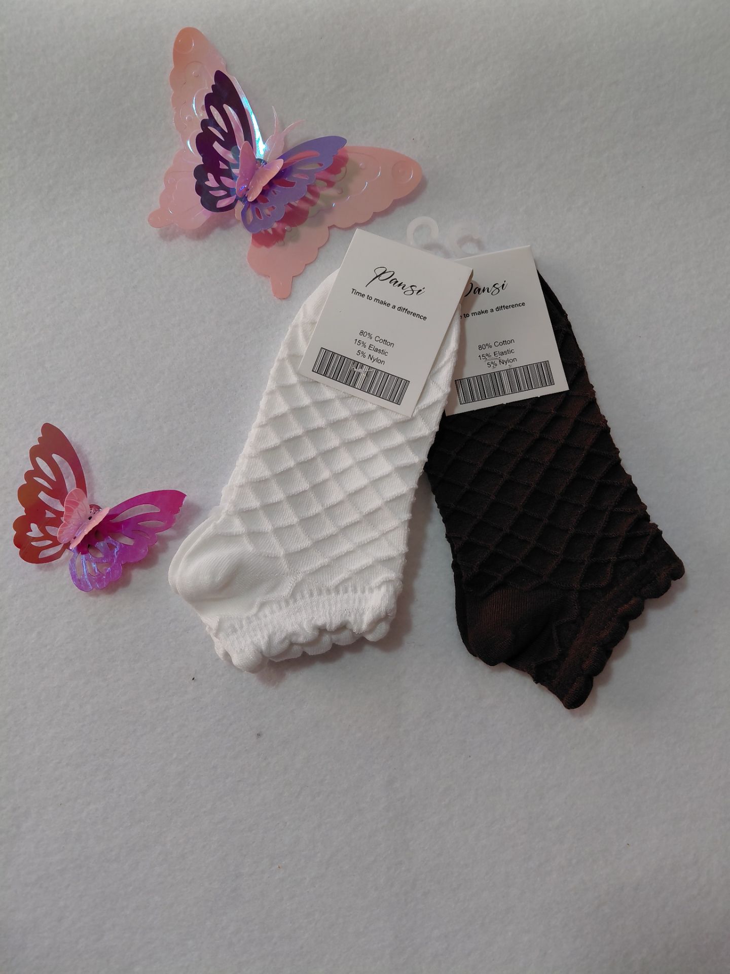 جوراب مچی زنانه طرح پفکی که دوطرح لوزی و گل داره جنس نخ پنبه فانتزی